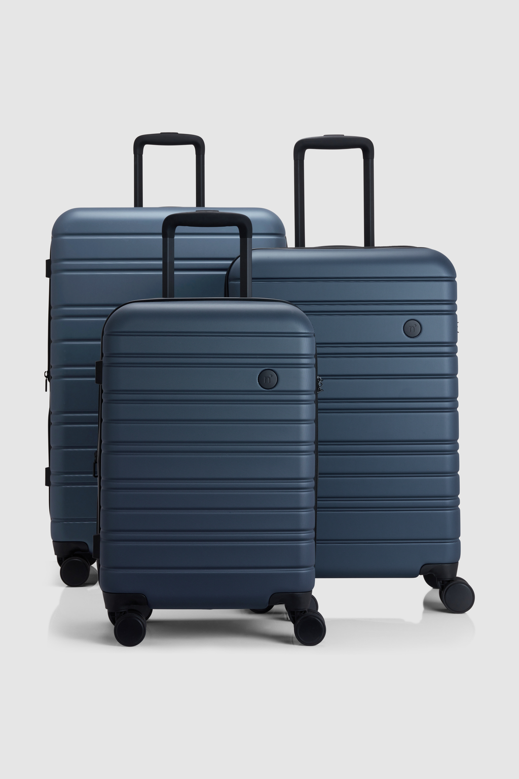 What's even better than one Stori? Owning this iconic suitcase in three sizes - now a breeze with the Nere Stori matching 3 Piece Set in Deep Navy. Featuring a small carry-on suitcase, a medium check-in suitcase and a large check-in suitcase, this hard case set is purpose-built for big adventures.